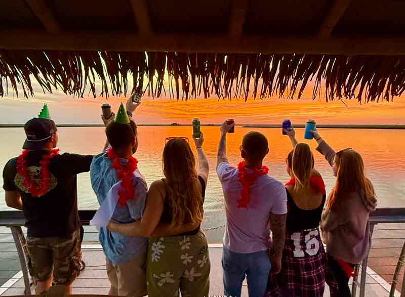 Climb aboard Pau Hana Tiki Boats for our signature Sunset Cruise, the unforgettable way to end your day at the Jersey Shore. When the sun dips low and paints the sky in gold, pink, and fire-orange, our tiki boats come alive with island vibes, great music, amazing views, and the perfect atmosphere to unwind.